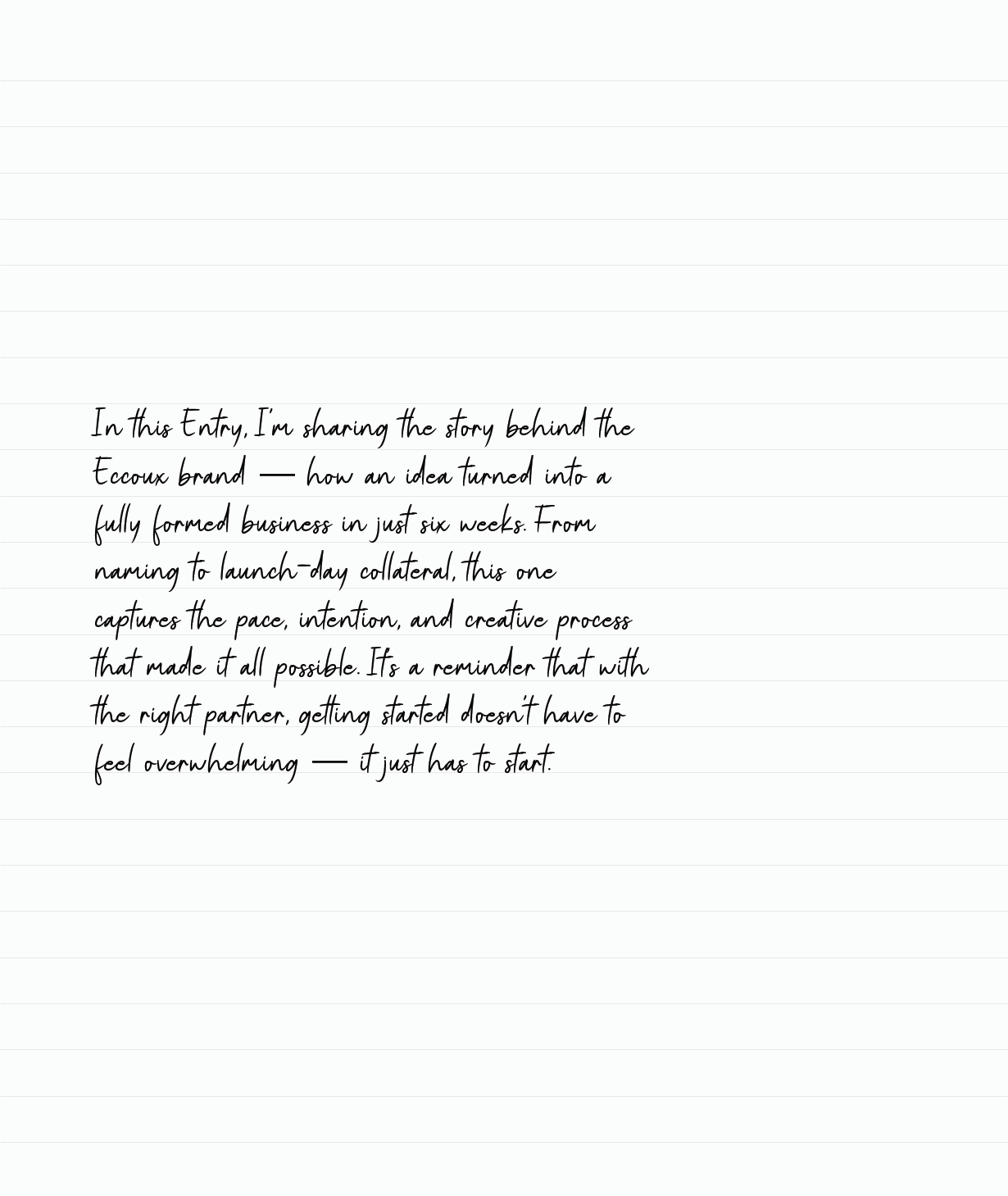 The Eccoux launch might have looked effortless — but behind the scenes, it was built on clear intention, trust in the process, and decisive creative execution. And in the grand scheme of things, maybe it was perfect — not because everything was easy, but because it came together with clarity and momentum. A reminder that launching doesn’t have to take forever, and it doesn’t need to feel overwhelming when you’ve got the right person beside you to get it done properly. If there’s a brand idea that’s been sitting in your notes app, whispering at you — this is your sign.